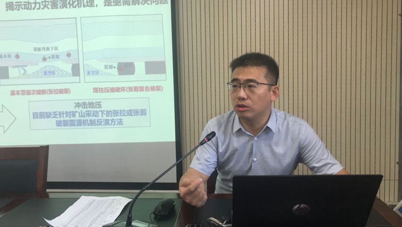 刘晓斐教授为学院师生做了题为《煤岩破裂多物理场监测时空响应与致灾失稳耦合反演》的报告。刘教授指出,煤炭是我国的主体能源,其担负着国家能源安全的兜底保障作用;随着浅部资源枯竭和深地战略的提出,向深部要煤炭资源是未来的必然趋势和新常态;但在深部开采过程中,伴随发生冲击地压,是煤矿主要灾害之一。目前对冲击致灾演化机理尚未完全掌握,缺乏针对性的精准防控措施。基于此,开展了煤岩样内部应变精细化监测、煤岩体破裂震源定量反演的研究,通过多物理场耦合监测揭示裂隙面破裂时空演化机制。