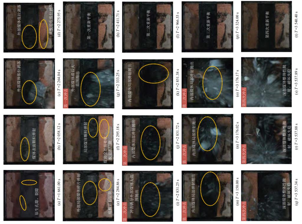 图2 动静载耦合作用下煤岩组合体变形破坏特征