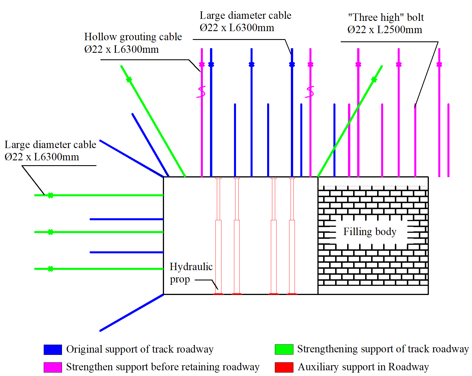 强采动影响下深井沿空留巷顶板内部裂隙发育,围岩支护系统若不能形成完整的承载结构,将使支护体被各个击破,严重影响留巷围岩稳定性。顶板分区耦合支护和以充填区域顶板为关键纽带的“四位一体”围岩控制技术,能够有效提高巷道整体稳定性,保障巷道安全通畅。